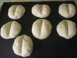 Prélever des boules de pâte de la taille d’une clémentine, les aplatir avec la paume de la main, en galettes d’1 cm d’épaisseur.……………….. Les ranger au fur et à mesure, bien espacées, sur la plaque du four………. Laisser à nouveau lever 2 h dans un endroit tiède.