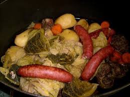 Au bout d’1 h de cuisson des viandes, ajouter chou + feuilles de chou blanchies + carottes.