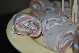 – Etaler 1 tranche de saumon fumé. Tartiner de fromage frais assaisonné et parsemer d’aneth frais haché ( ou des sommités de fenouil frais)