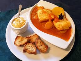 Dans une cocotte ou une marmite, chauffer l’huile d’olive puis ajouter oignons + pommes de terre + poireaux + tomates + morue. Couvrir de l’eau chaude.