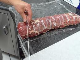 Rouler la viande sur elle même pour former une grosse paupiette. La ficeler.