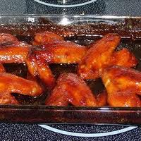 Disposer les ailes de poulet ôte à côte dans un plat allant au four. Les napper de la marinade. Couvrir. Laisser mariner au frais au moins 2 h ( on peut faire ceci la veille).