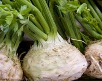 Le lendemain: – Oter la peau du céleri. Le couper en cubes. Faire cuire 20 mn dans l’eau bouillante salée portée à ébullition ( il doit rester un peu ferme !). Egoutter.