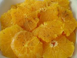 Peler les oranges à vif. Les couper en fines rondelles. Les disposer au fur et à mesure sur un plat, en rosace, arrosées de leur jus.