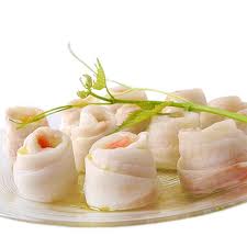 Etaler chaque filet de poisson devant vous. Déposer 1 cuillère à soupe de farce sur chacun. Disposer dessus 3 crevettes décortiquées.