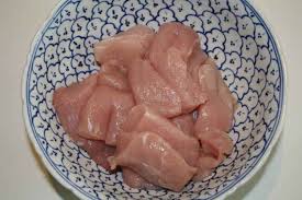 Découper les blancs de poulet en lanières d’1 cm de large et 4 de long.