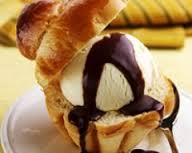 Avec une cuillère à glace ( ou une cuillère à soupe), former des boules et remplir les brioches de glace.