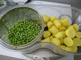 Pendant ce temps, cuire les pommes de terre à l’eau. Les peler. Les couper en morceaux.