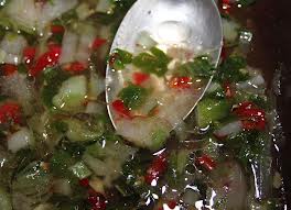 Dans un grand bol, bien mélanger oignons + cives + ail + persil + piment + sel. Verser dessus les 20 cl d’eau bouillante + le jus de citron. Couvrir. Laisser infuser qq mn.