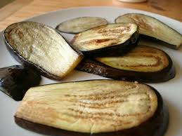 Découper l’aubergine dans la longueur en tranches d’1/2 cm d’épaisseur. Les saler.