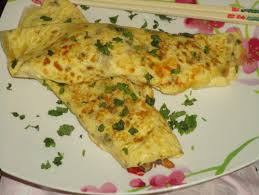 Dans une petite poêle à blinis, cuire 4 petites omelettes fines.