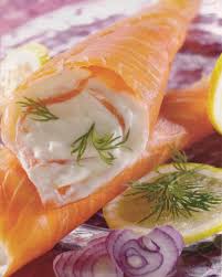 Rouler les tranches de saumon en cornets ( ou en bûchettes).