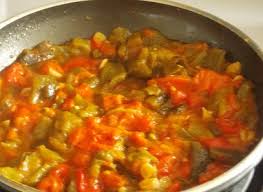 Dans une grande poêle, chauffer l’huile. Y mettre tomates + pommes de terre + poivrons + ail + piment + sel + poivre. Mélanger. Couvrir. Laisser cuire 45 mn.