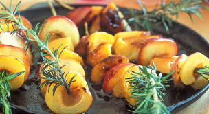Enfiler les 1/2 pêches sur les branches de romarin.