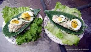 Décorer chaque demi-concombre de rondelles d’oeufs durs + des brins entiers de ciboulette.