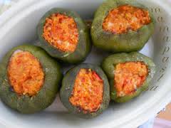 Découper un chapeau aux poivrons. Retirer les graines sans percer le poivron. Les remplir de la préparation précédente.