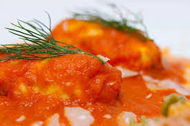 Napper de sauce tomate + vin blanc + jus de citron + huile. Saler, poivrer. Couvrir le plat. L’enfourner pour 30 mn.