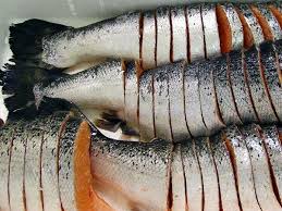 Avec la pointe d’un couteau, piquer les tranches de saumon à plusieurs endroits et y enfoncer les lardons. Saler, poivrer.