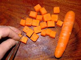 Peler et couper en petits dés les carottes. Les plonger 5 mn dans l’eau bouillante. Egoutter. Dans une cocotte, fondre 75 g de beurre. Y faire revenir les carottes 15 mn.