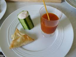 Dans une soupière ou un saladier, verser cidre + coulis de tomate + huile d’olive + jus des citrons + ail + sel + poivre. Mélanger.