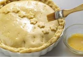 Badigeonner le dessus de la tourte avec un oeuf battu.