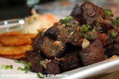 (accompagnement: bananes plantains en rondelles et sautées, riz, haricots rouges, purée …)