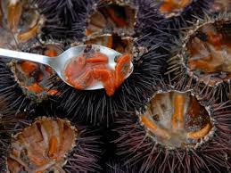 Prélever les langues dans les oursins ou égoutter les boîtes. Emietter grossièrement le tout. Ajouter ces oeufs dans la soupe + le piment entier ou la poudre de piment. Mijoter 5 mn.
