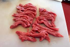 Tailler la viande en tranches fines puis en lanières. La mettre dans le saladier. Mélanger. Laisser mariner 2 h au frigo.