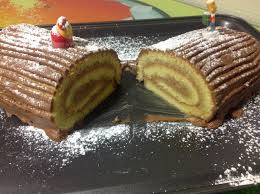 Dérouler délicatement le biscuit. Etaler dessus la moitié de la mousse aux marrons et rouler le biscuit à nouveau, bien serré. Le déposer sur un plat, fermeture posée sur le plat.