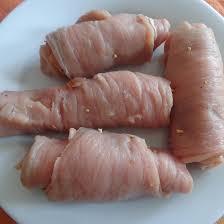Poser une escalope devant vous. Prélever 1/4 de la farce obtenue. La déposer sur une pointe de la viande. Rouler en serrant bien. Fermer avec des pics en bois, une brochette piquant d’un côté à l’autre ou du fil ou de la ficelle de cuisine pour bien tenir le tout.