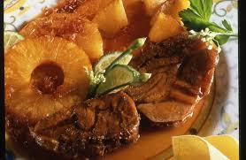 Recouvrir chaque tranche de viande d’une rondelle d’ananas. Déposer 1 oignon grelot au centre de chaque rondelle. Badigeonner de marinade. Remettre au four pour 2 à 3 mn.