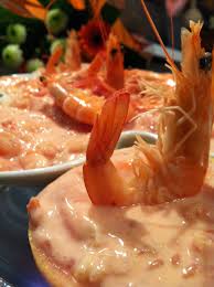 Dans un saladier, mélanger mayonnaise + jus de citron + vin blanc + Worcester + Gin.