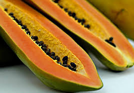 Peler les papayes. Les couper en 2. A la petite cuillère ( dentelée, celle à pamplemousse, ce sera encore mieux !), retirer les graines et les filaments gélatineux du coeur. Découper la chair des papayes en dés. Les mettre dans une grande casserole.
