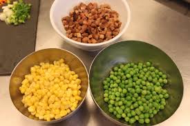 Incorporer maïs + poivrons + pommes de terre + potiron + petits pois + riz.