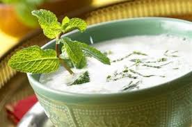 Servir le potage bien frais, saupoudré de cumin ou de garam masala et décoré d’1 feuille de menthe fraîche.