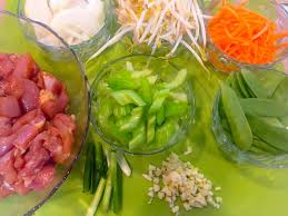 Marinade: -Découper le poulet en lanières. Les mettre dans un saladier.