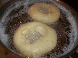 Avec la pâte obtenue, façonner de petits bracelets que vous jetez au fur et à mesure dans l’huile bouillante pour environ 5 mn en les retournant au moins une fois: les beignets doivent être bien dorés. ( faire frire la pâte en plusieurs fournées pour que les anneaux ne se collent pas entre eux).