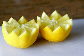 Evider les citrons soigneusement avec un petit couteau ou une cuillère à pamplemousse, sans abîmer les coques.