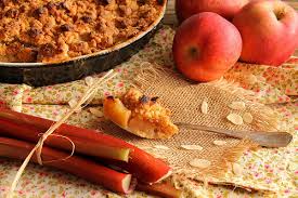 Dans un saladier, mélanger dés de pommes + raisins égouttés + compote de rhubarbe. Etaler cette préparation dans le ou les plats pour le four.