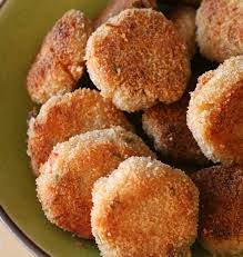 Sortir la préparation du frigo. Prélever avec une cuillère à soupe de quoi façonner une boulette. La rouler dans la farine puis la faire dorer 2 à 3 mn dans l’huile: procéder par fournées pour que les croquettes ne se touchent pas dans l’huile bouillante.