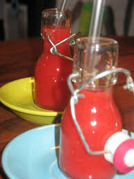 Mixer framboises + fraises + groseilles + sirop au gingembre + jus de citron. Passer le tout à travers un chinois pour obtenir une soupe lisse et fluide.