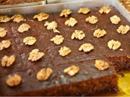 Laisser complètement refroidir le gâteau. Le décorer de cerneaux de noix. Le découper en carrés ou en petites parts.