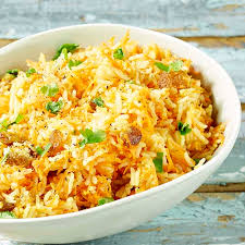 Le riz étant cuit, lui incorporer jambon + raisins égouttés. Garder au chaud.