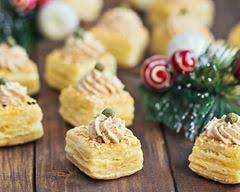 (accompagnement: tartelettes ou mini feuilletés tartinés de mousse de foie de canard ou d’oie – purée de marrons – compote de pommes)
