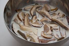 Mettre les cèpes secs à tremper dans du lait ou de l’eau tiède pour 30 mn minimum.