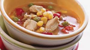 Ajouter poulet + maïs + piment et touiller 5 mn, que la soupe soit très chaude.