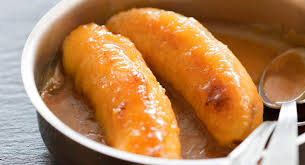 Déposer les bananes dans le caramel. Les arroser peu à peu de jus de citron & orange en les roulant régulièrement dans le caramel: elles doivent dorer et le caramel épaissir: 8 mn.