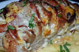 Découper le rôti en tranches. Le napper de sauce. L’entourer de boulettes de fromage garnies de noix.