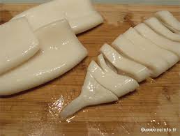 La veille: – Pour des calamars frais, les nettoyer en enlevant la peau. Les découper en anneaux. Découper les tentacules en petits morceaux.