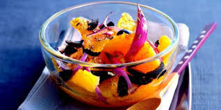 Dans un saladier, mélanger délicatement moules + dés d’oranges + anneaux d’oignons + mayonnaise.